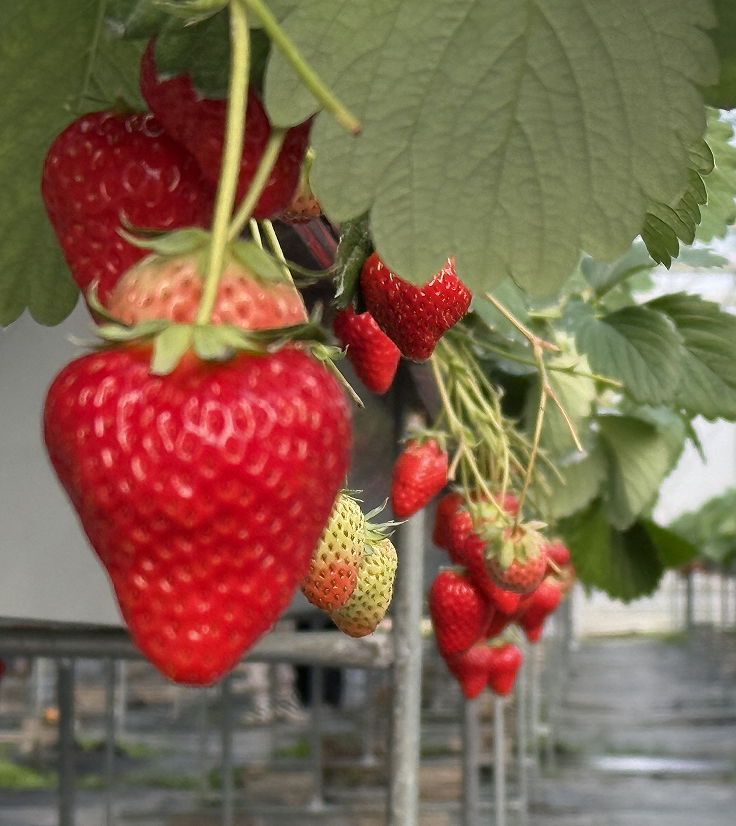 采摘大棚矗立在滕頭景區(qū)旁,顯得格外矚目,大棚里一縱縱翠綠的葉子上冒出了無數(shù)個鮮紅欲滴的小果實,透著勃勃生機,湊近一聞,濃郁的果香撲面而來。此時大家被眼前大大小小、顏色誘人的草莓吸引,忍不住的將酸酸甜甜的草莓摘了直接丟進嘴里,甜甜的草莓汁在嘴里、心里流淌,大家一邊品嘗一邊采摘,臉上洋溢著燦爛的笑容。